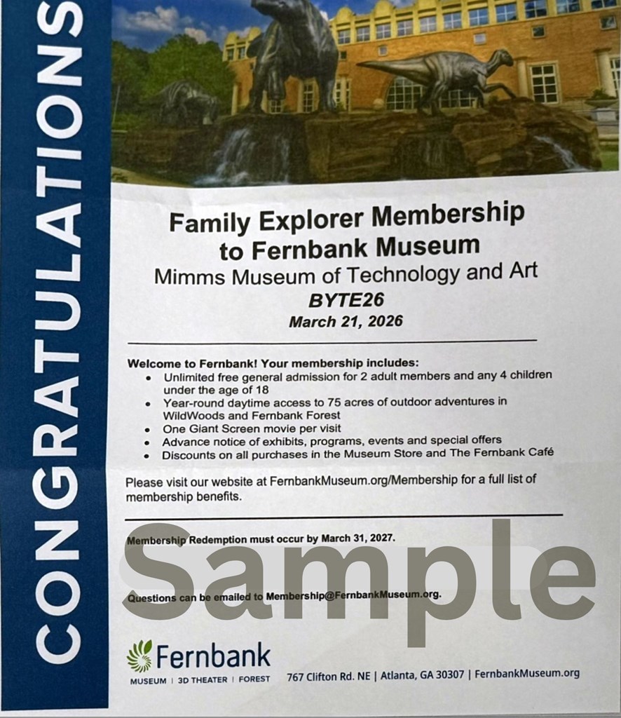 Things to see. Things to do. Things you won't believe. With an annual membership to Fernbank Museum, you or someone you love can explore dinosaurs, live animals, ancient fossils, and new nature and science discoveries, indoors and outdoors, all year long. Fair Market Value of This Item: $169