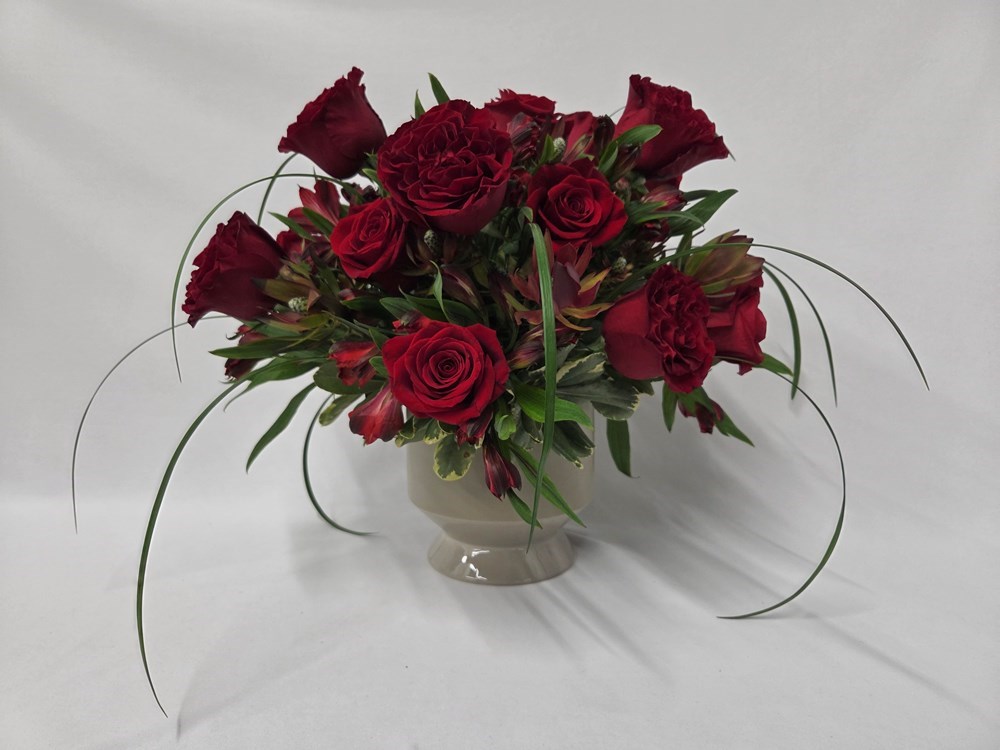 At the conclusion of BYTE26, take home this stunning arrangement from Stems on the Move! The arrangement features Red Hearts Garden Roses, Freedom Roses, Admirer Red Alstromeria, Safari Sunset Spray Protea, Mixed Premium Greenery and Lily Grass beautifully arranged in a lovely compote. Fair Market Value of This Item: $225 Shipping Not Available for This Item
